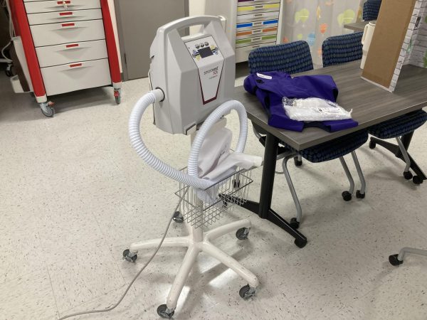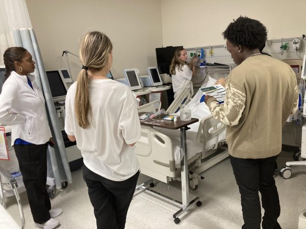 Then, both members walked us to one of the lab’s skill stations. They turned on one of the station’s nebulizers, which produced a small volume of mist surrounding the station’s mannequin. The nebulizer is an oxygen device that provides a variety of lung medications to patients who experience respiratory diseases such as asthma and chronic obstructive pulmonary disease (COPD).